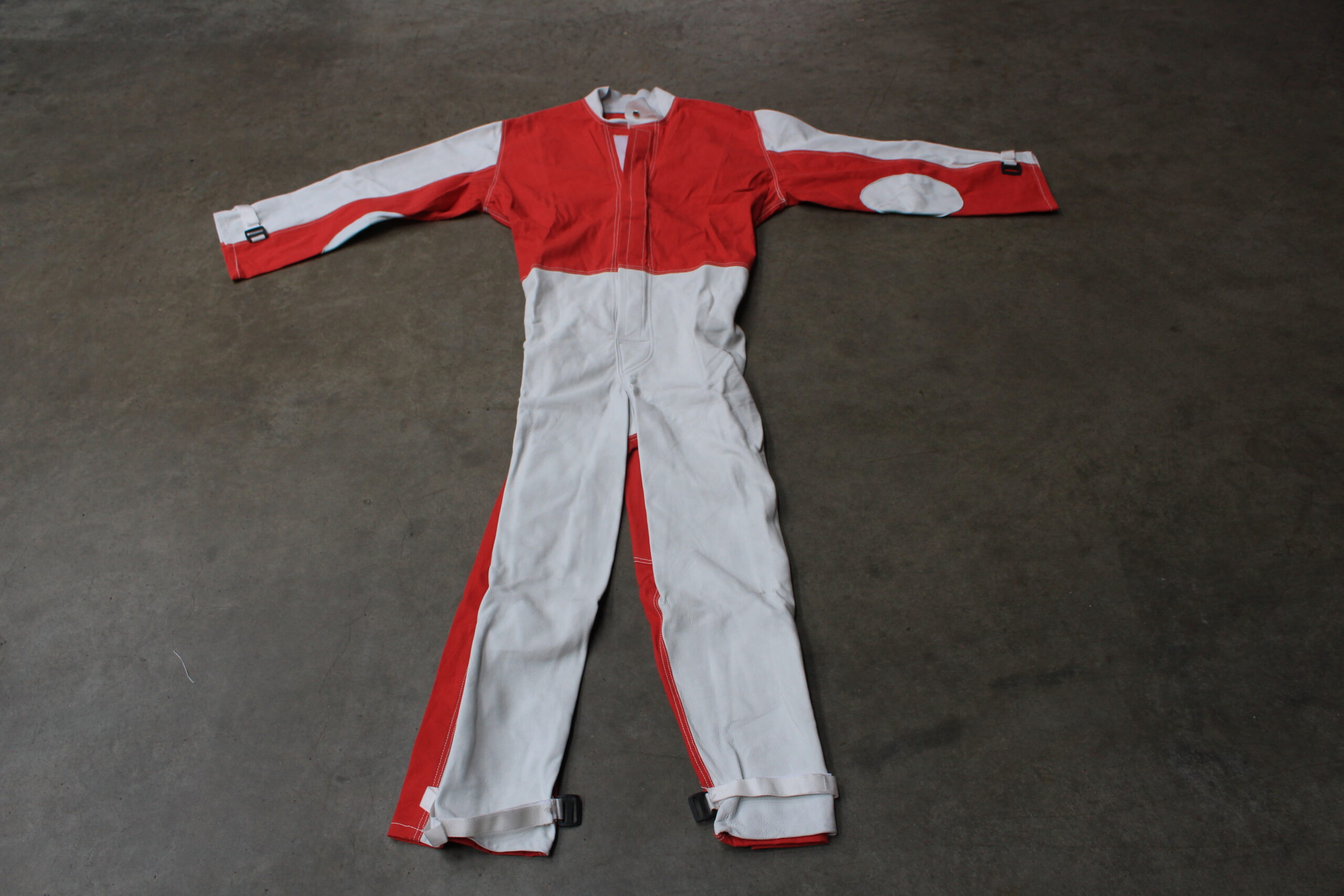 Auf Wunsch kann der Strahlanzug auch 2-teilig (komplett aus Vollrindleder) gefertigt werden.
